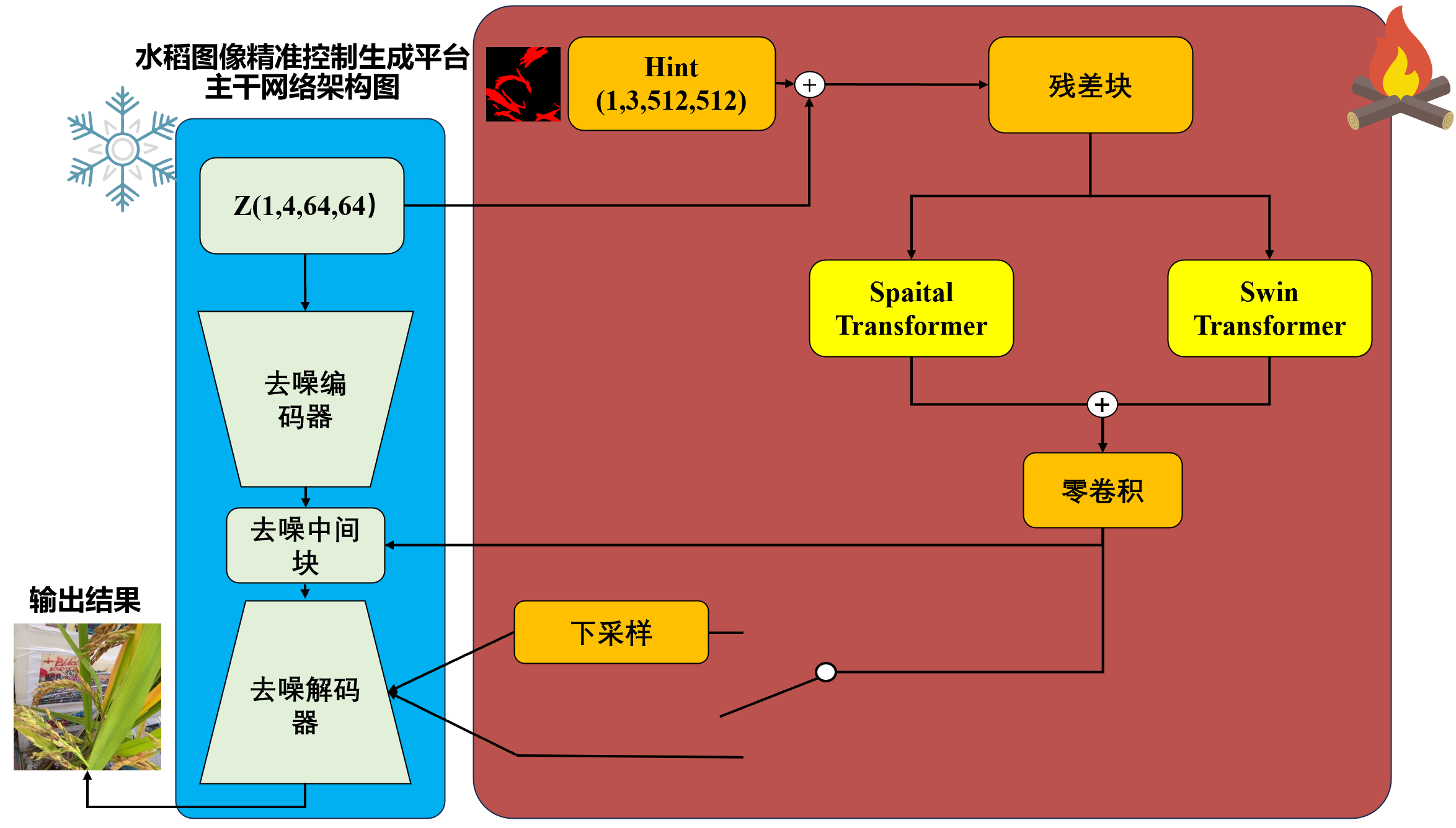 基于Swin-ControlNet的精准引导控制水稻图像生成平台,是一个融合了Swin Transformer与ControlNet技术的深度学习图像生成系统,我是该软件著作的第一权利所有人。该平台通过引入Swin Transformer模块构建双流空间变换器架构,利用水稻数据集(CVRP)进行训练,能够根据用户提供的控制提示(红色掩码区域)精准生成高质量的水稻图像。系统提供的Gradio Web界面支持多种参数配置,可广泛应用于农业图像生成、精准农业研究等领域。